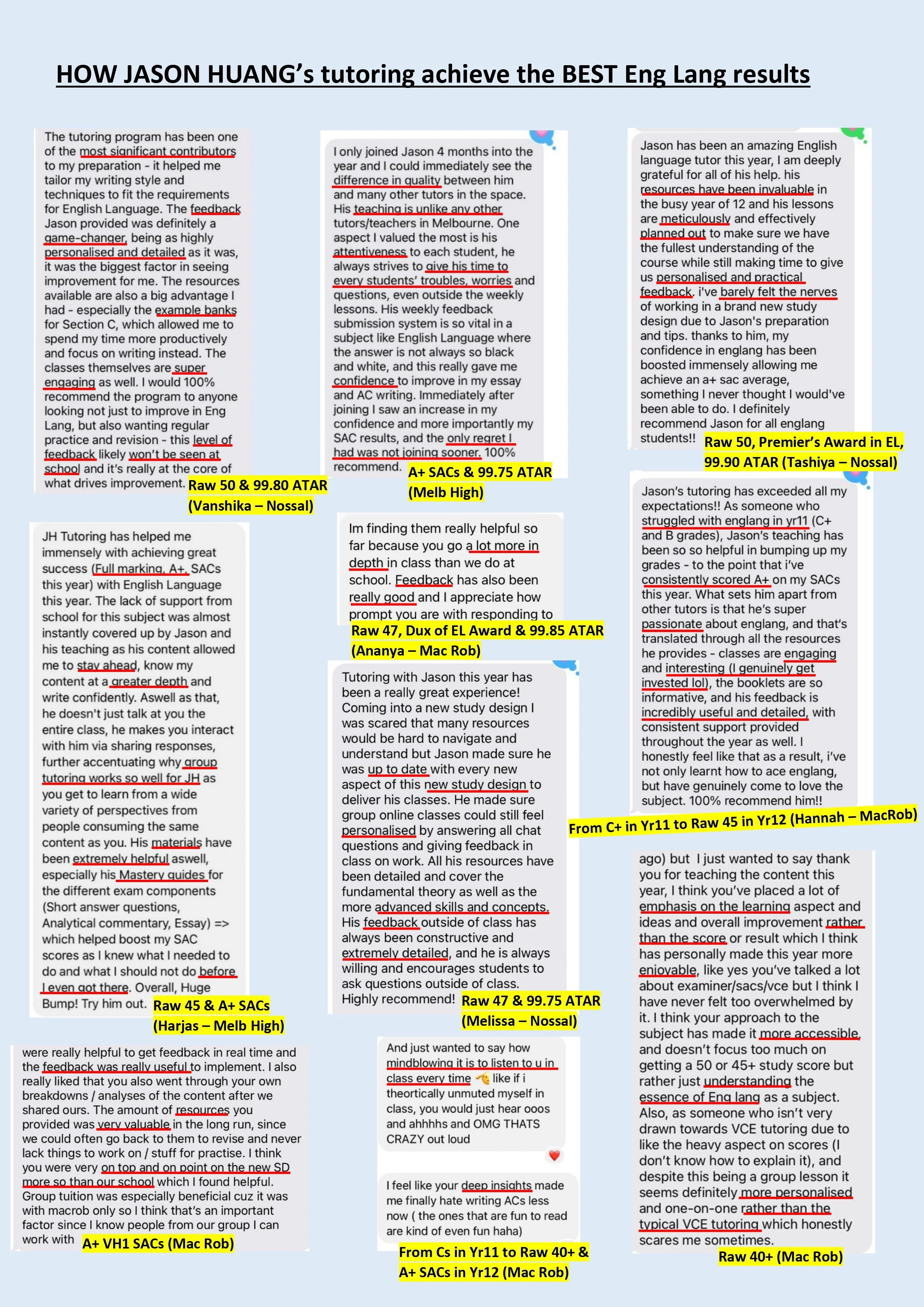 Link to the Review & Results file: https://bit.ly/StudentReviewsandResults-JasonHuangVCEEnglishLanguageTutoring2026